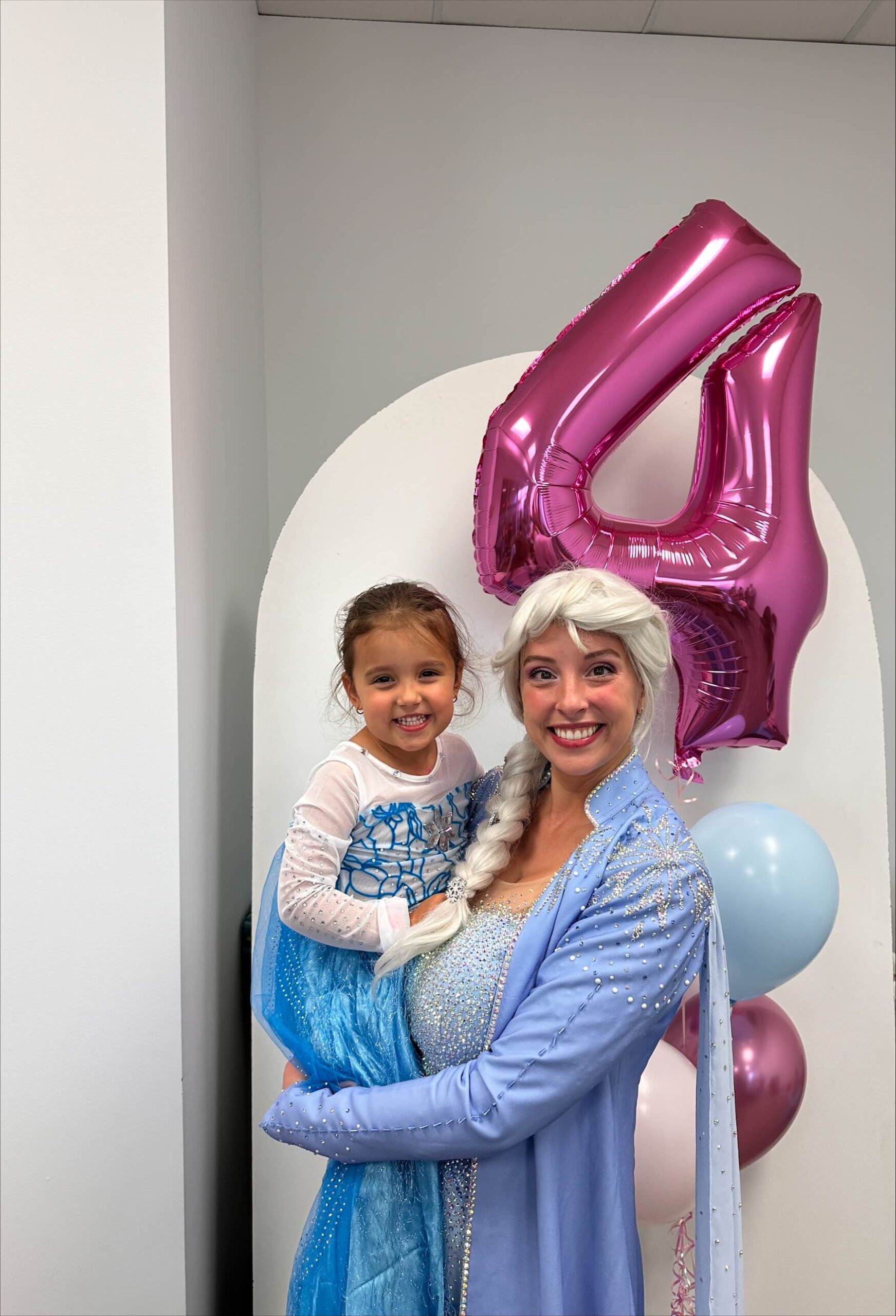 Elsa, la Reine des neiges, transporte les enfants dans son univers, celui d’Arendelle. Dès son arrivée, Elsa crée des liens avec les enfants afin de les faire sentir important à ses yeux. Ensuite, elle leur présente sa boite à souvenirs, dans laquelle se trouvent des objets en lien avec le film. Ne pouvant faire apparaitre de la glace seulement à Arendelle, Elsa prouve ses pouvoirs grâce à un tour de magie : le livre à colorier. Elsa et Anna avaient dessiné des dessins pour la fêtée, mais Olaf les a effacés pour leur jouer un tour. Les enfants parviennent à faire apparaitre les dessins, émerveillés ! Elsa fait ensuite participer les enfants à la danse « Libérée délivrée », en leur apprenant quelques mouvements. Ensuite, une bataille de boule de neige est prévue (ne vous inquiétez pas, celles-ci sont fausses). La Reine des neiges termine sa visite avec des maquillages de fantaisie professionnelle.